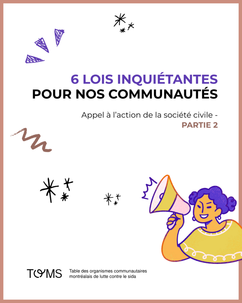 Depuis quelques semaines, le gouvernement de François Legault s’est lancé dans une politique de terre brûlée. La TOMS s’inquiète de la succession d’actions législatives liberticides qui viennent fragiliser les milieux d’intervention auprès des personnes vivant avec le VIH ou à risque d’infection.
